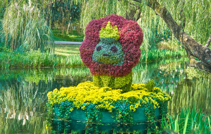 青蛙王子是我們耳熟能詳的童話故事,在水上設計制作青蛙王子的卡通綠雕造型,更加符合場…
